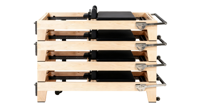 The AW1003 Maple Wood Core Pilates Reformer offers a stable and quiet training experience for home users and beginner studios. With high-precision bearings, stackable design, and an innovative circular handle system, this entry-level wooden reformer ensures smooth, safe, and comfortable workouts while saving space.