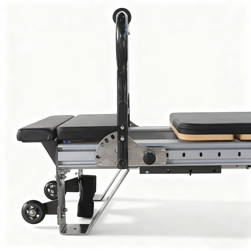 The AL1012 Aluminum Track Pilates Reformer is a durable and stable model designed for commercial studios looking for a reliable traditional reformer pilates experience. Built with a full aluminium pilates reformer frame and precision aluminum track system, it delivers smooth carriage movement and long-term performance.